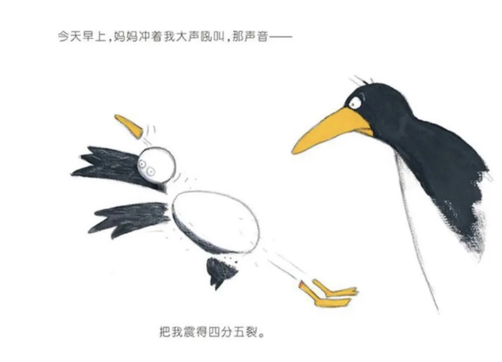 当企鹅妈妈气得对小企鹅大喊大叫时,小企鹅吓得整个身体都散架了,碎成了好几块,那种痛苦简直无法想象!