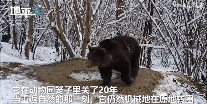 罗马尼亚曾经有只黑熊,在动物园里被关了20年,当它重新回到大自然的那一刻,仍然机械地在原地打转!